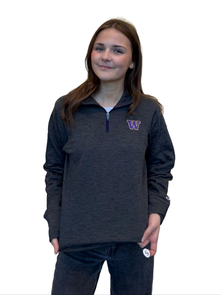 Support your Washington Huskies with this Champion Quarter-Zip Top. Part of the sustainable fabric collection, this lightweight pullover is made from recycled polyester and features four-way stretch fabric for extra comfort. The embroidered team logo adds a touch of team spirit.