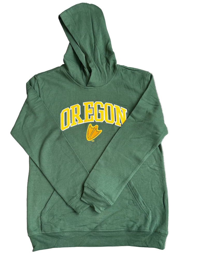Keep your young Duck fan warm and spirited with this classic University of Oregon hoodie by Genuine Stuff. Made from soft, durable fleece, it features the iconic Oregon logo across the chest, a roomy front pocket, and a cozy hood for all-day comfort. Perfect for game days, school, or everyday wear — this hoodie shows true Ducks pride in style.