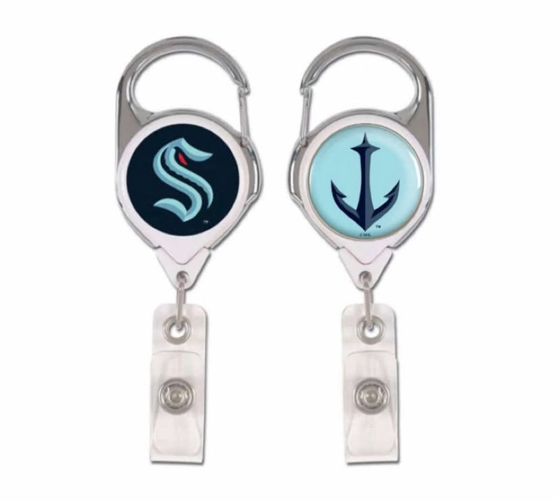 The 2-Sided Retractable Badge Holder features your team on the front and back. The clip has 34-inch heavy-duty retractable nylon cord. This item is perfect for hanging your I.D. or security card handy every day. The carabiner style metal clip allows for easy attachment to a belt loop or pocket! Decorated in the USA. Officially licensed.