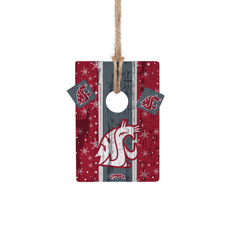 This festive WSU Cornhole Ornament brings a touch of game day fun to holiday décor. Designed to look like a miniature cornhole board, it features Washington State University’s official colors and logos, making it a perfect addition for any Cougar fan’s tree.
